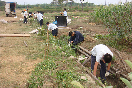 國一誠班在多承擔、多培福的信念下,不但維護校園整潔,同時還配合改善學生農耕的「耕讀農場」公共環境,進行公田儲水桶裝設、排水溝便橋設置、排水溝芒草清除‧‧‧‧‧‧