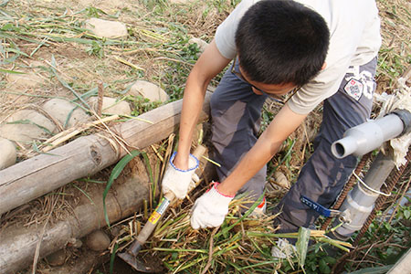 ◆排水溝芒草清除:國中男生各班私田旁的水溝除了堆滿石頭,水溝內的芒草也非常令人困擾,每年只能用割草機割去草尾,很難斬草除根。芒草根抓地性非常強,長得又快,溝內芒草根與石頭混雜,水溝空間又小,增加清除的困難度。