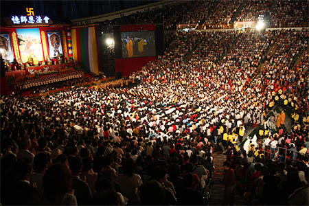 七日法會,主要是中南部的學員和長青班,報到人數百分之一○四;北部和海外地區學員則在八日,兩天來自海內外的同修總計超過三萬人,護持義工包含花圃和進駐鳳山寺的大寮,多達四千八百多人。
