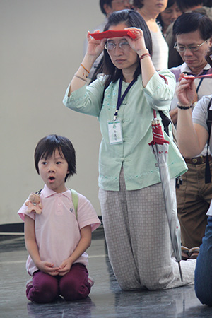 十月國家音樂廳的讚頌發表會,王媽媽也參加了,而且還意外發現兒子的指揮服已經舊了,所以主動掏腰包要兒子去買一套新衣。憶師恩法會上,眼尖的同修可能會發現子承老師的服裝不一樣了,沒錯,這就是王媽媽送的禮物!