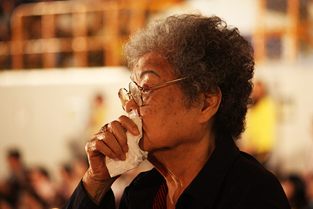 淨遠法師總結上午場時說,師父寧願講法累倒在講台上,也不願生病躺在床上。好幾次,師父請兩位法師左右各一邊把他架下床,一步步扶到講堂,再一階一階像爬山那樣架上講台,師父先喘幾口氣,聲音微弱,但漸漸的聲音愈來愈清亮有力,講完一堂課,力氣也耗盡了,下了台躺在床上,有時連翻身的力氣都沒有。法師最後語重心長地說:「師父就是這樣教導我們的,我們怎麼能不感念師父的恩德呢?」