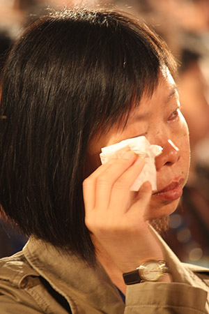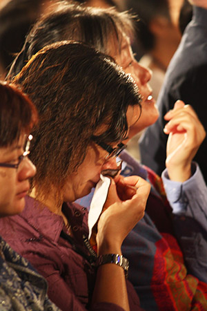 法會在全體唱「盼你來」組曲中接近尾聲,妙慧小朋友們純稚的童音緩緩開始,到了一聲又一聲的「歸來歸來⋯⋯」全場的情緒幾乎沸騰了,每個人由心底發出了殷重的祈求,淚眼朦朧中幾乎見到袈裟飄舉、滿眼慈悲的師父微笑而來。