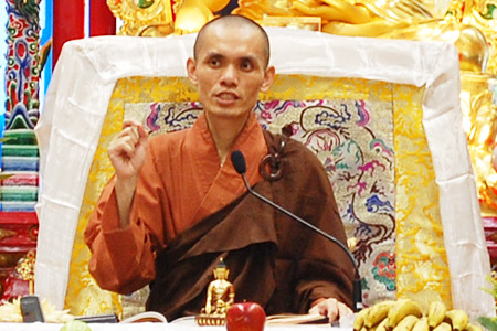 正受皈依前,如證法師引廣論「正修下士意樂」,策勉大家生起希求後世之心,也就是希望來世能更好,最好的方法就是皈依,有智慧的人不要輸在這一生造業上,起跑點輸了就來不及了。法師引導聽師父開示「以何事而皈依」之後,提到最近有新流感發生,大家都很恐慌,其實這幾年來都有瘟疫發生,像口蹄疫、SARS、禽流感。我們都期待沒有流感,期待身體健康,沒有疾病,這是不可能的。生活上有很多痛苦都是業力造成的,我們唯一能做主的是造善業,覺得流感恐怖就該認真皈依。對生活周遭的苦,以及輪迴的苦愈了解,皈依心就會愈強,確信唯有三寶能救我們,能讓我們前景光明。