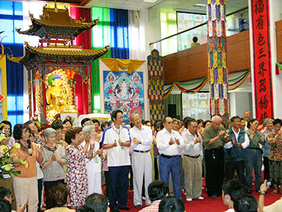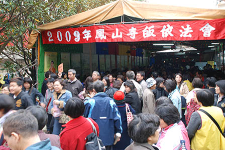 二○○九年皈依法會,北區是四月廿五日、廿六日在鳳山寺舉行兩天,南區則是五月三日在園區宗仰大樓舉行。鳳山寺兩天的法會共湧入七千多位來自各廣論研討班、長青班及大專班的學員,儘管氣象報告聲稱當日天氣寒冷,同修們齊聚一堂,專心領受師長加持,絲毫不覺寒意襲人。園區舉辦的法會只有一天,和煦的陽光普照大地,五千多人把宗仰大樓的二、三、四、九樓擠得水洩不通,每個人的臉上都綻放燦爛的笑容。
