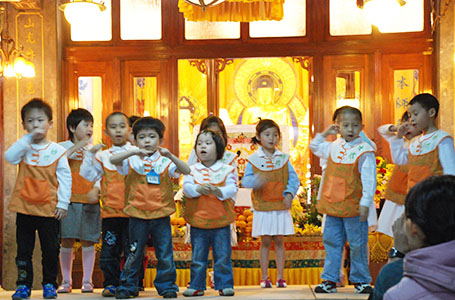 小朋友琅琅讀經聲,博得熱烈掌聲。 |